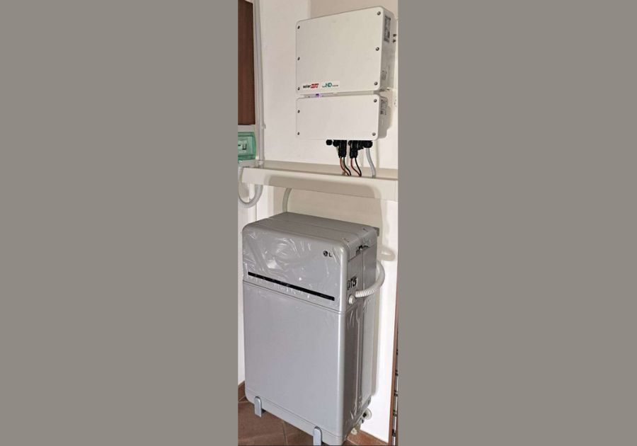 Impianto fotovoltaico composto da 15 moduli SunPower Performance 6 RES 405 W, Ottimizzatore SolarEdge S500, Inverter monofase SolarEdge StoreEdge 6000HY HD WAVE e sistema di accumulo LG Chem Resu 10H Prime.