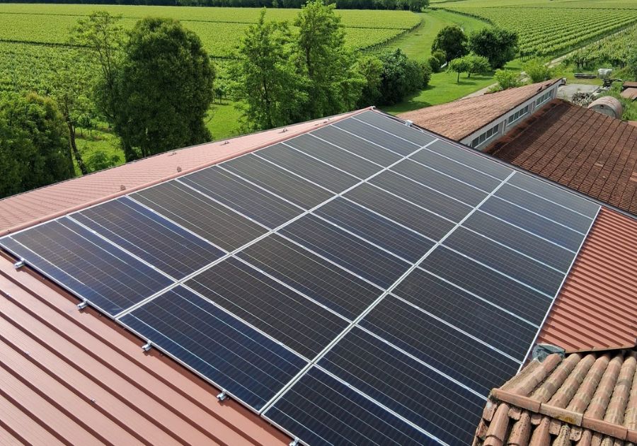 Impianto fotovoltaico installato sulla copertura di una Società Agricola a Ponte di Piave (TV) grazie al bando Agrisolare, composto da 30 moduli SunPower P7 da 550 W installati su lamiera grecata, ottimizzatori SolarEdge S500B, inverter trifase SolarEdge.